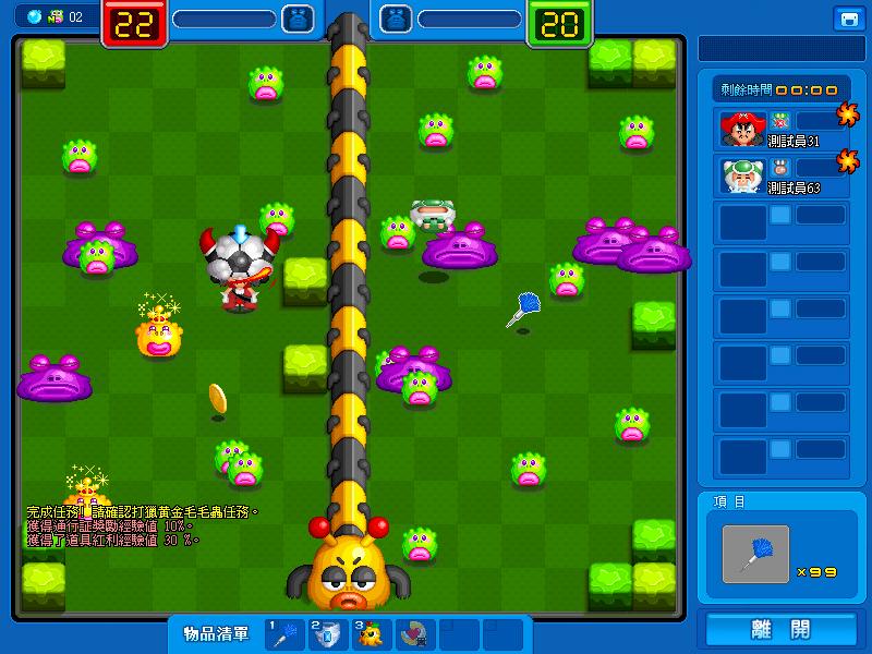 遊戲並搭配開放「獵殺!!黃金毛毛蟲!! 」任務,玩家完成指定獵殺「黃金毛毛蟲」數量後,將可獲得「針、通行證、經驗值 +30% 券、高級藍色槌子1根」等道具;若完成所有階段任務,將可獲得全新開發超古錐「黃金毛毛蟲頭飾」。同時,新手升級獎勵系統也將同步改版,玩家達成系統指定等級,即可獲得禮物盒,點選禮物盒將可隨機獲得「飆風ㄚ瘦、優雅小蜜桃、移行幻影…」等道具,提供給新手玩家體驗。