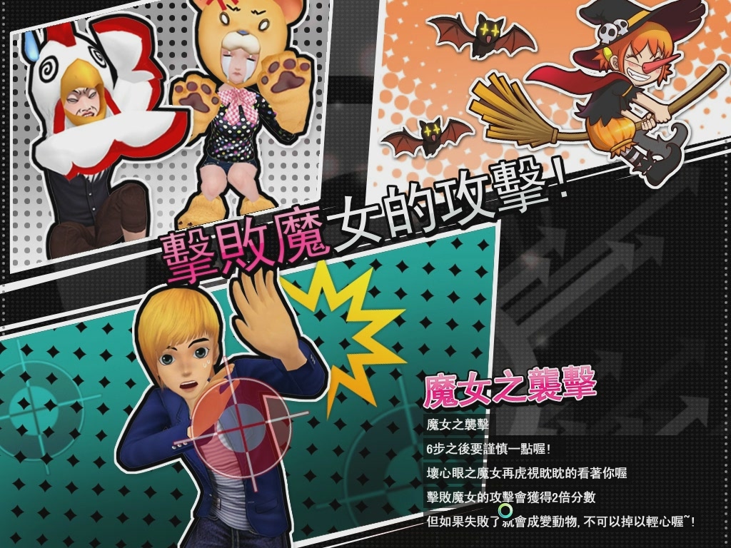 新增魔女襲擊模式的設計,讓玩家在遊戲進行中會不時有可愛的小魔女偷偷現身,隨機給予玩家指定的舞蹈動作指令,若玩家挑戰成功就能獲得 2 倍分數加乘,若是無法達成指令話將立刻變身成為逗趣的動物造型,考驗著玩家們的臨場反應及專注力