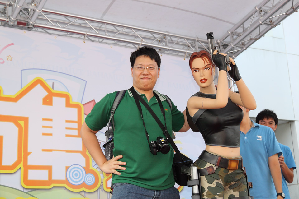 古墓奇兵》女主角蘿菈的等身大塑像,拍賣途中工作人員還替蘿菈戴上了黑框眼鏡,展現不同於剽悍女打仔的知性 OL 風情,“標”得美人歸的熱情玩家也興奮的上台與蘿菈拍照留念。