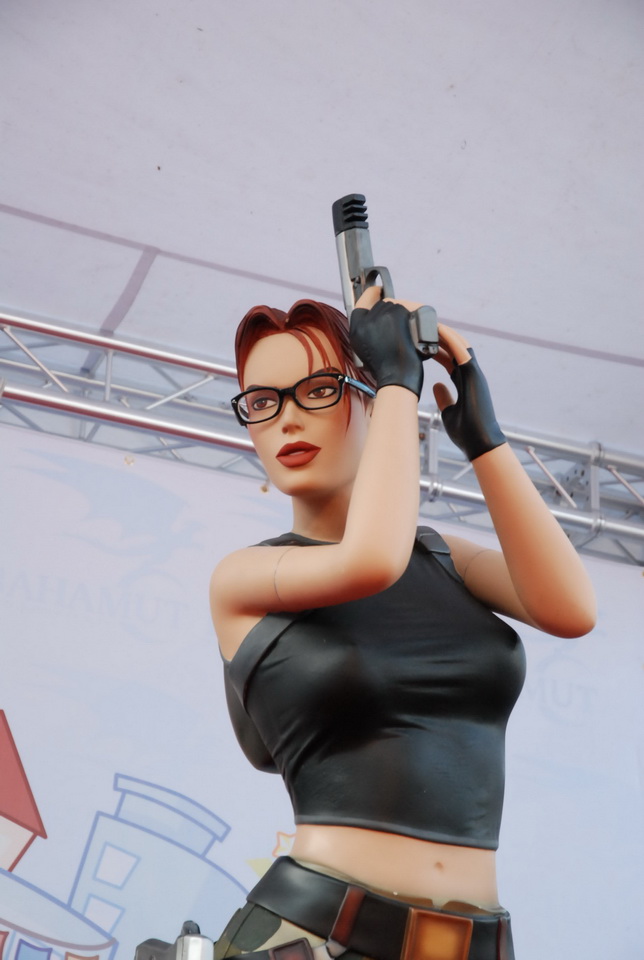 》女主角蘿菈的等身大模型,作為巴哈市集活動的愛心義賣品項。工作人員也在現場還特別為蘿菈戴上了黑框眼鏡,展示出大家所沒見過的另類風情。