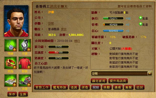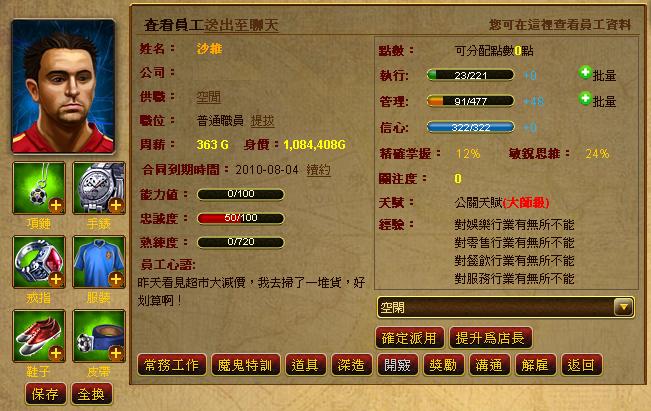 熱血沸騰!世界盃的新任霸主經已誕生!在這一刻,想要吸引全世界的目光,就只有這套披上「世界盃冠軍戰衣」!在全新的冠軍戰衣中,散發著王者的霸氣!配合其超高屬性的基礎加成,讓員工穿上的話,也一定能夠將其實力推上另一個層次!另外,在商城中亦新加入了全新的「王者風範套裝」,基礎屬性比原來的 CEO 守護套裝更加優越!而且在活動期間將限量優惠,以舊套裝的同等價錢就可以搶先購買!各位大亨,快趁夏日,一次過替員工換上新製服吧!