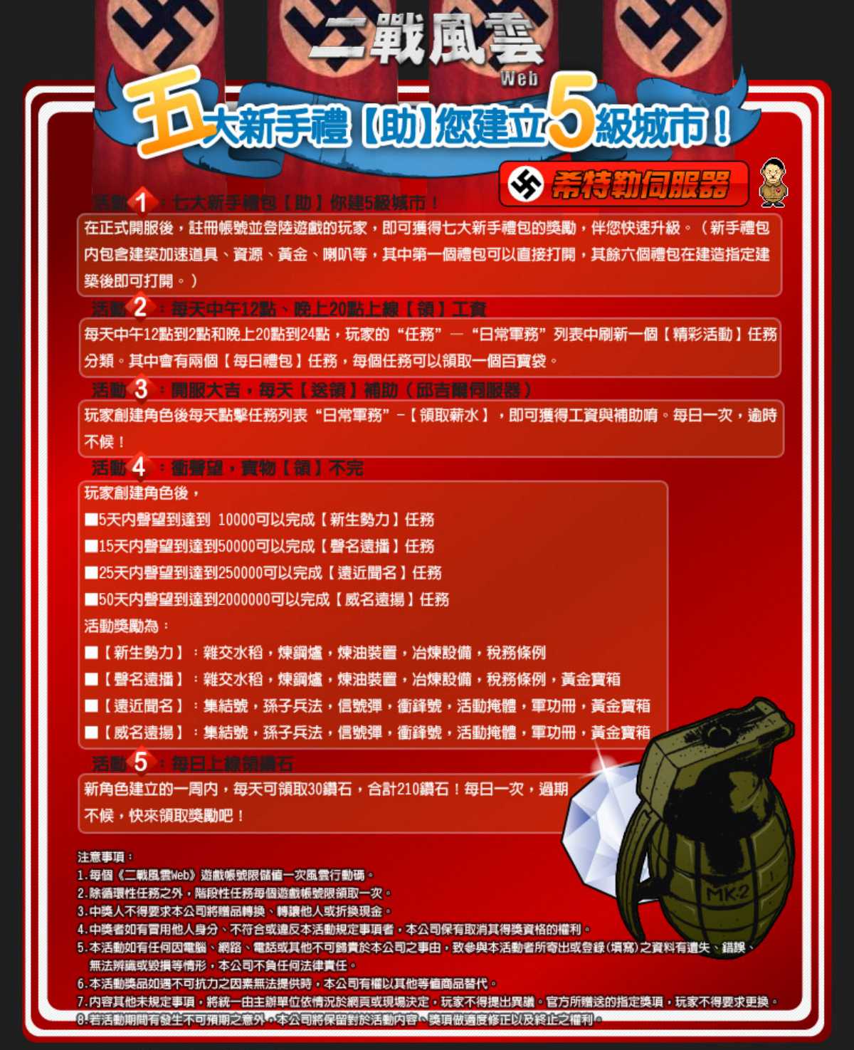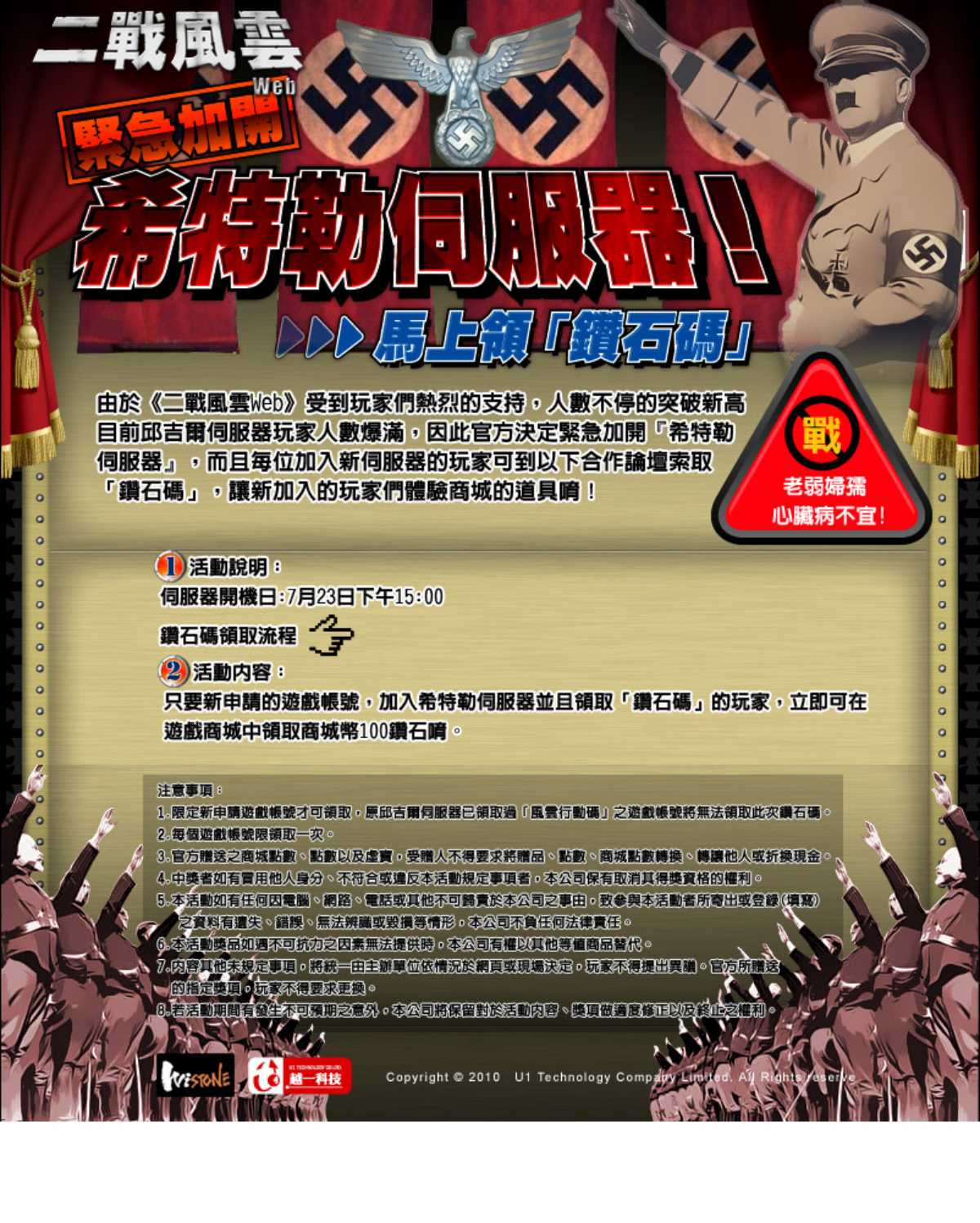 二戰風雲 Web》「希特勒伺服器」正式啟動。更多的活動訊息,請玩家們密切注意官方網站。
