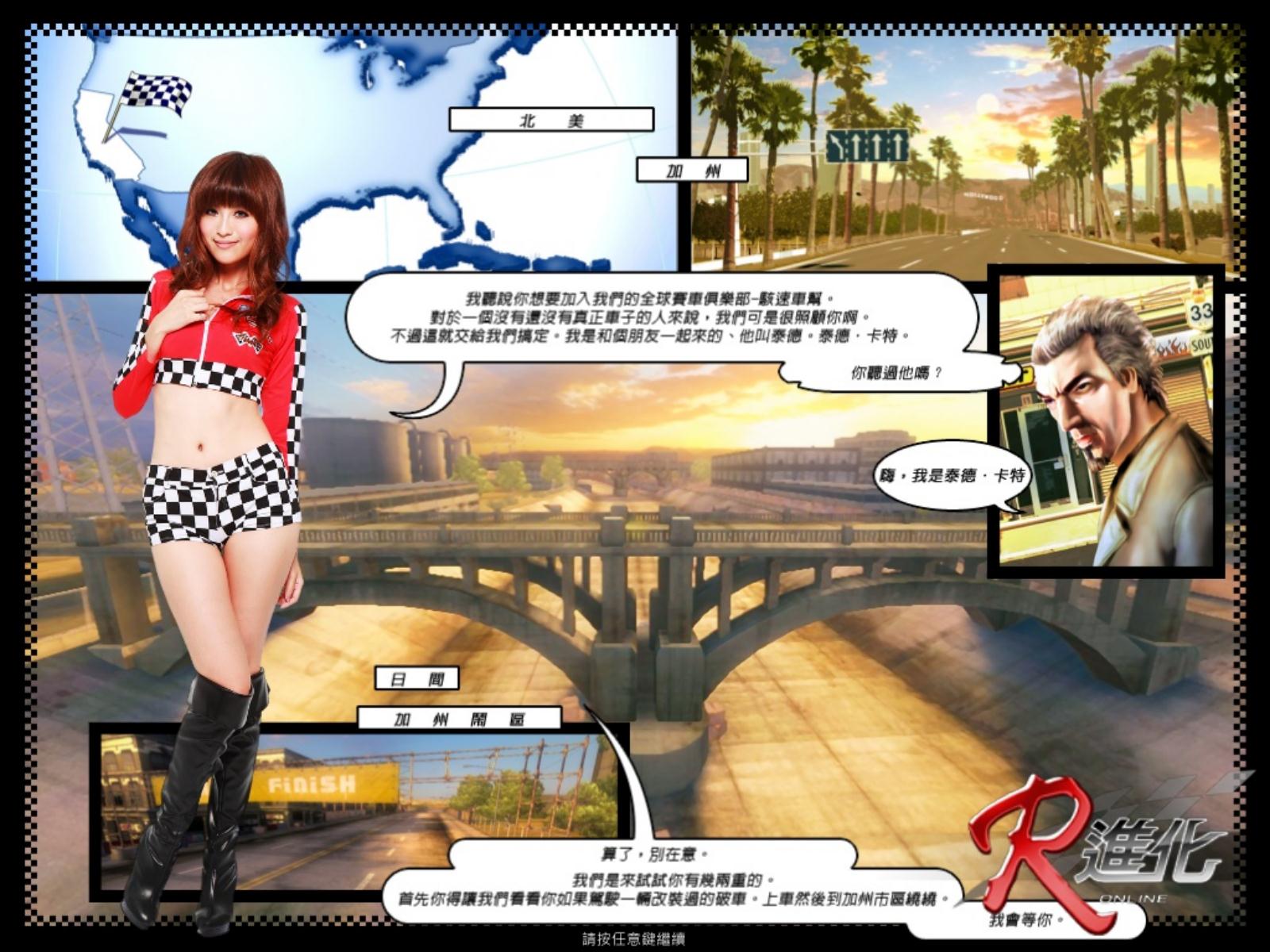 | 美麗的真人賽車女郎將指引玩家進行各項任務 |