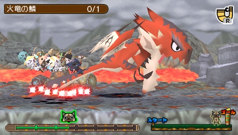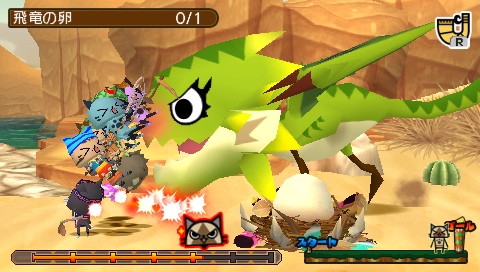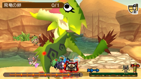 魔物獵人》系列的各種熟悉怪物登場,雖然怪物的造型變化為符合遊戲形象的可愛風格,不過強悍的實力與猛烈的攻擊並沒有因此而改變,玩家必須掌握各種怪物的行動模式謹慎選擇行動提議,才能順利打敗怪物取得素材等獎勵。