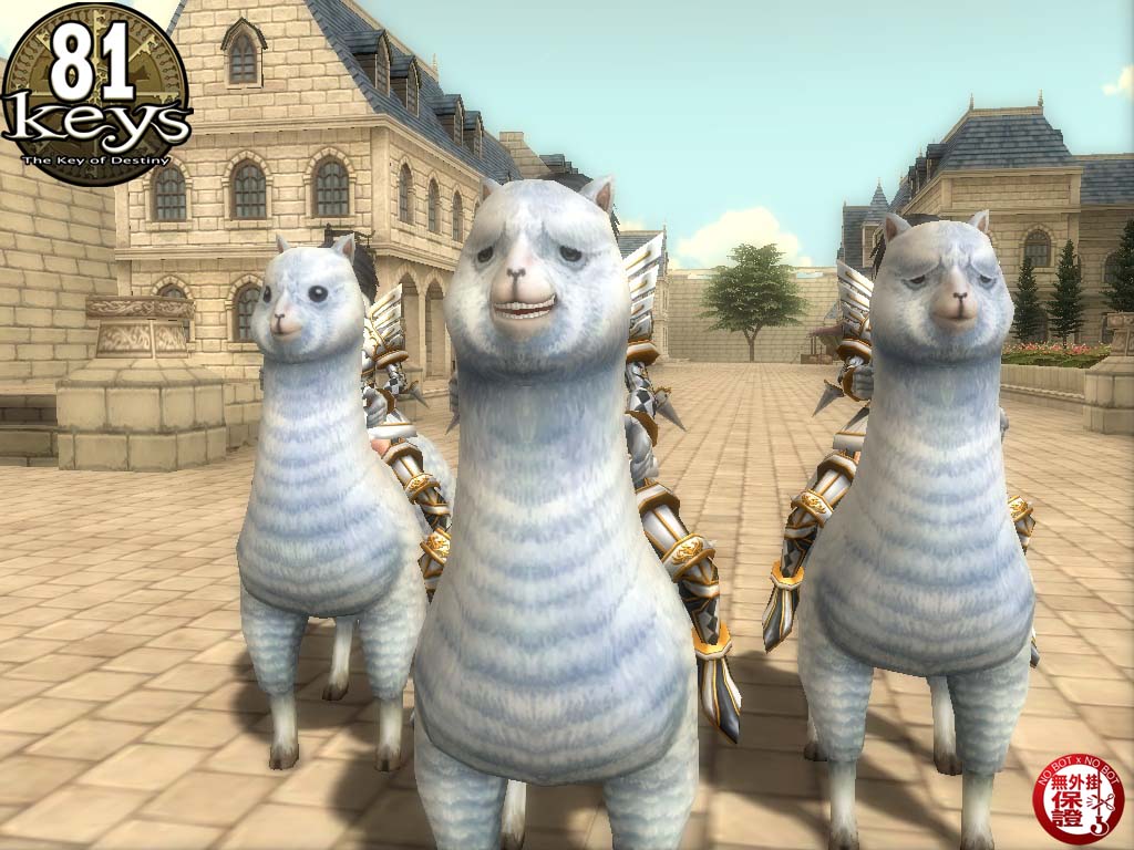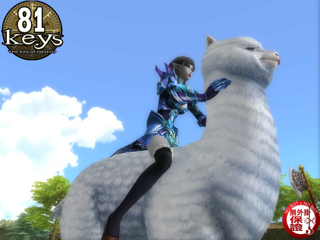 81 Keys》史上最 KUSO 坐騎「草泥馬」,並且一次推出草泥馬三兄弟「囧囧、跩跩、萌萌」,除了獨特外觀,更具備最 KUSO 的坐騎技能!