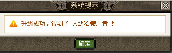 這裡我們可以看到,升級成功率只有 18%,我們可以使用太學符來提升成功率,最多可以使用三個。這裡我們使用三個高級太學符後,成功率提升為 33%,當運氣足夠好的時候,就可以得到升級成功的提示,原先的 11 風級技能書升級為 13 階人級冶鐵之書。