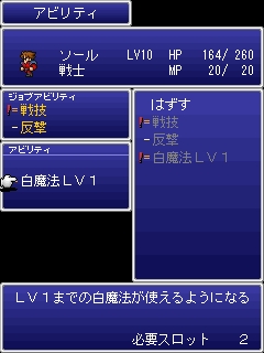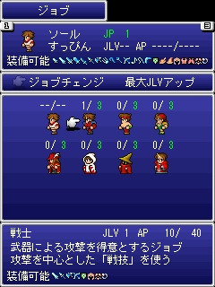 遊戲中玩家可依照自己喜好替角色選擇戰士、武僧、盜賊、盜賊、白 / 黑 / 紅魔道士、召喚士等不同「職業(Job)」,透過戰鬥獲得技能點數(AP)學習各職業特有的「技能(Ability)」,還可以組合不同技能構成強力的「融合技能(Fusion Ability)」。