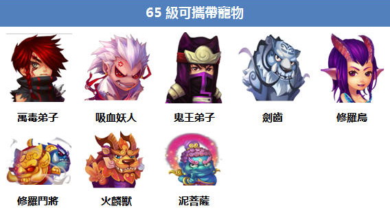 官方表示,寵物等級將開放至 80 級,各種高等怪物將紛紛出籠,當然這也意味著玩家可以捕捉並且攜帶更高等的寵物。包含火麟獸、炎魔、惡龍等等威力強大的寵物即將成為玩家最有力的幫手。