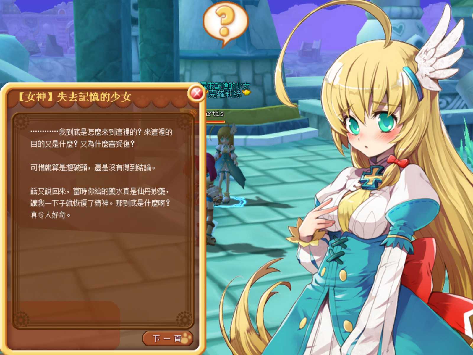 經過一番波折後,藉由聖樹的幫助恢復了少女的部份記憶。原來少女是一名神界的