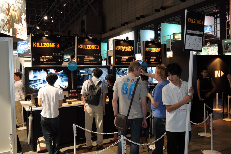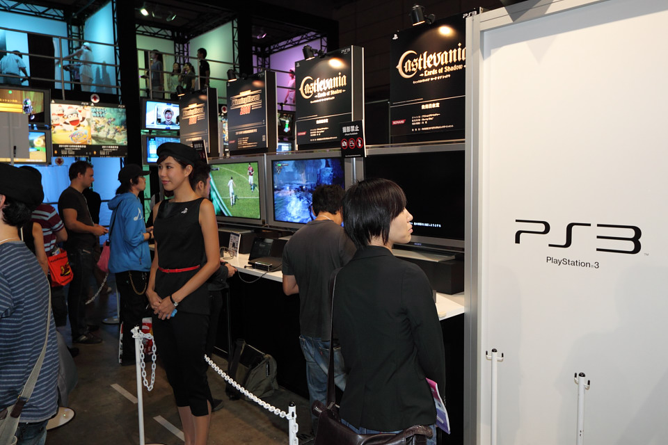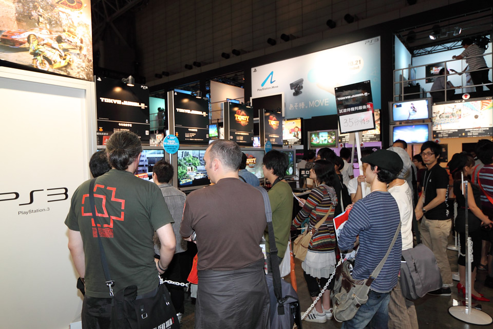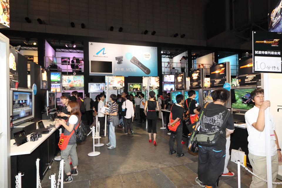 日本索尼電腦娛樂(SCEJ)本次在幕張國際展場 4 廳設攤展出,攤位規模雖然比前 2 年來得小,不過仍與比鄰的 LEVEL-5 攤位及 CAPCOM 攤位並列全場最大規模,展出的內容則是以 PS3 即將推出的 PlayStation Move 體感控制器為主,同時搭配為數眾多的 PS3 3D 立體顯示支援遊戲。