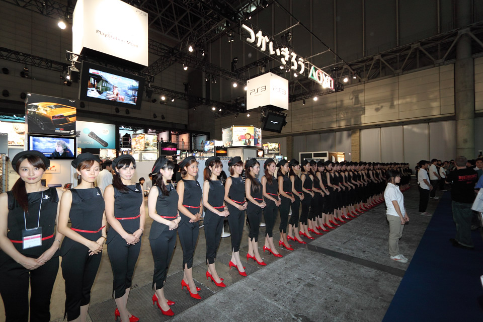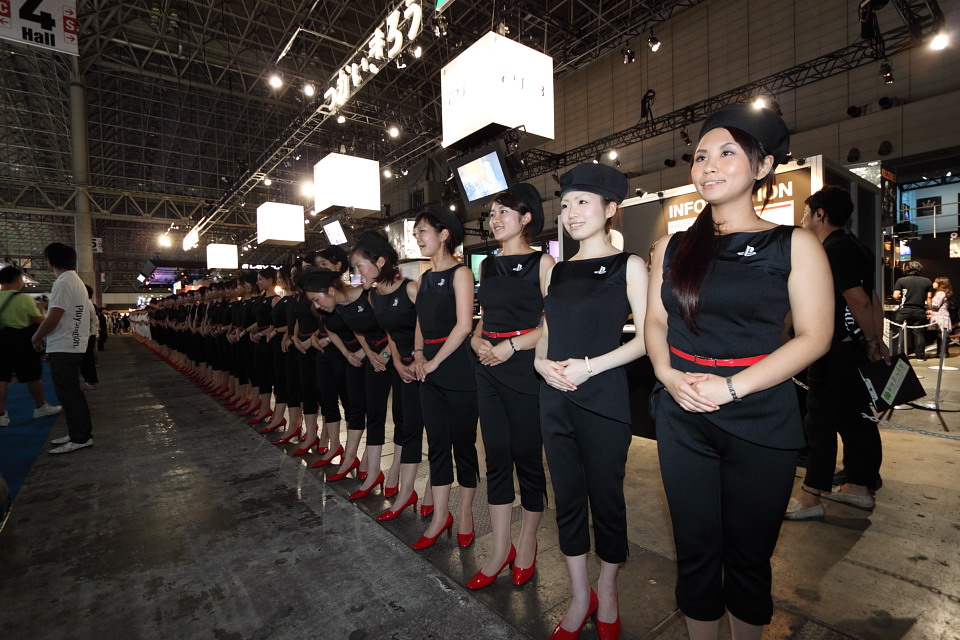 雖然今年 SCEJ 攤位規模縮小,不過閉幕時 Show Girls 一字排開的陣容還是相當壯觀。