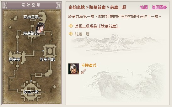 全新的秦皇墓副本中一共設置 4 道關卡,每道關卡對應一檔副本,只有通過對應的關卡才可以進入對應的副本。秦皇墓總共分為 4 個副本,每個副本 6 層,以下為官方副本內容介紹:
