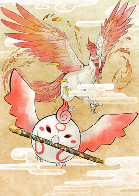 身為本作的主角的小白狼身體上有著和天照(アマテラス)相似的花紋。有一天,和畫家一寸(イッスン)一同出現在神木村。神木村的木之精靈咲夜(サクヤ)就以「小照(チビテラス)」來稱呼牠。