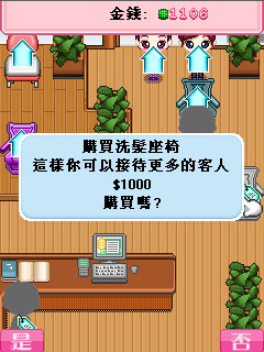 在你營業的過程當中,會發現單純的理髮不在是吸引客戶的重點,多變的選擇與服務會造就更多的商機,因此在遊戲當中有許多設施及選項,讓你能夠在理髮外創造更多的利潤!此外,對於舊有的設備也別忘了要適時升級設備才能安撫客人喔!多買一張椅子讓等待的客人坐著,或者升級椅子的 SIZE 讓客人更舒適。絕對讓他們有物超所值的感動。