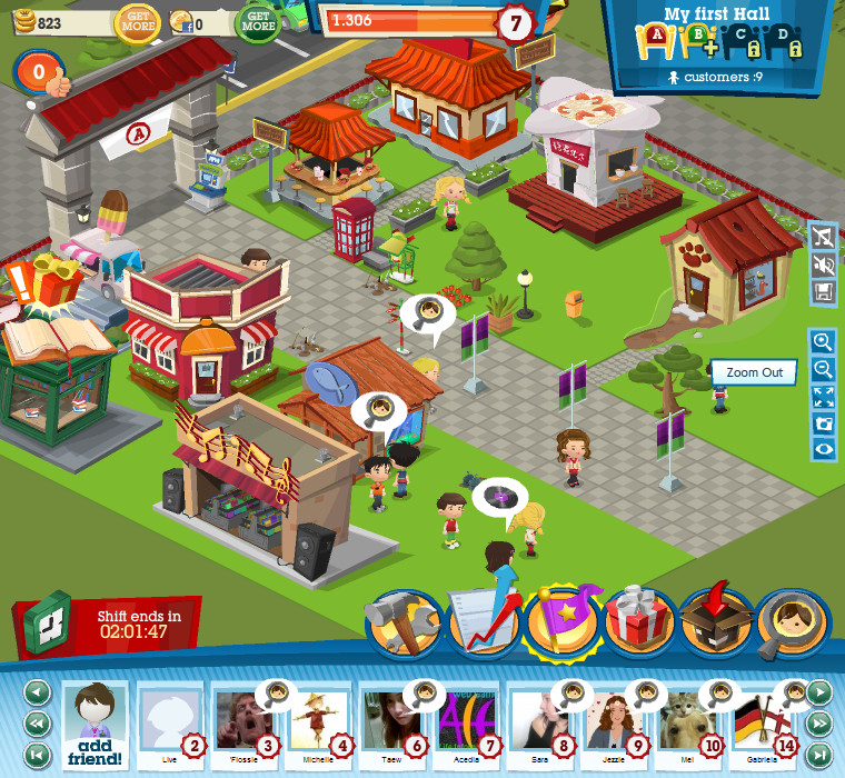 夢想購物中心》的用心,要讓世界各地的人不受交通限制都能到這座最棒的購物城。好友互動方面,可幫忙需要協助的顧客或是清掃園內垃圾,打擊惱人的土撥鼠也可以獲得些許經驗,但每天有次數限制,到達上限時就換下個需要幫助的好友吧。