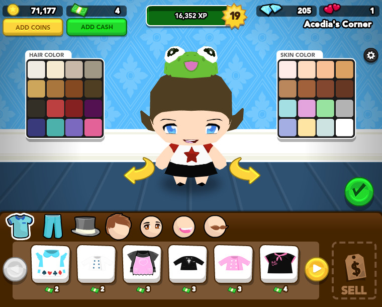遊戲中沒有常見的打工賺錢,或許玩家會覺得奇怪,沒有工作哪來的金援作為龐大治裝費的後盾,雖沒制式化的生產賺錢,取而代之的是每天登入發的獎勵,姑且就當做薪水吧!在大家條件都差不多的情況下,衣著搭配成為相當重要的課題。俗話說『女人的衣櫃總是少一件衣服』,在逛服飾店的時候,跟現實生活一樣可以先試穿,喜歡才購買是最高指導原則。而且服飾店會區分出各個類型,除了美艷的夜店穿著外,一般生活居家或是戶外活動的服裝也有,並非一套衣服持續不斷的穿下去。