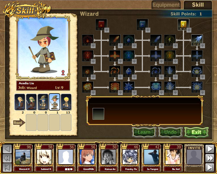 在一開始的新手任務中,玩家可選擇的職業有戰士、法師、治療者以及弓箭手等四種,選擇後就無法更改。角色扮演最值得研究以及特色的是技能部分,每個職業細分三類學習天賦,可針對單類天賦進行精通,或是雙修練、三修練天賦,不過多數技能點有前置需求,而且技能點數有限。不同職業有各自專屬的武器裝備,可從商店購入或是打怪中有一定機率會掉落,購入裝備時可立即看到裝備的素質比較,對玩家來說是相當方便的設計。