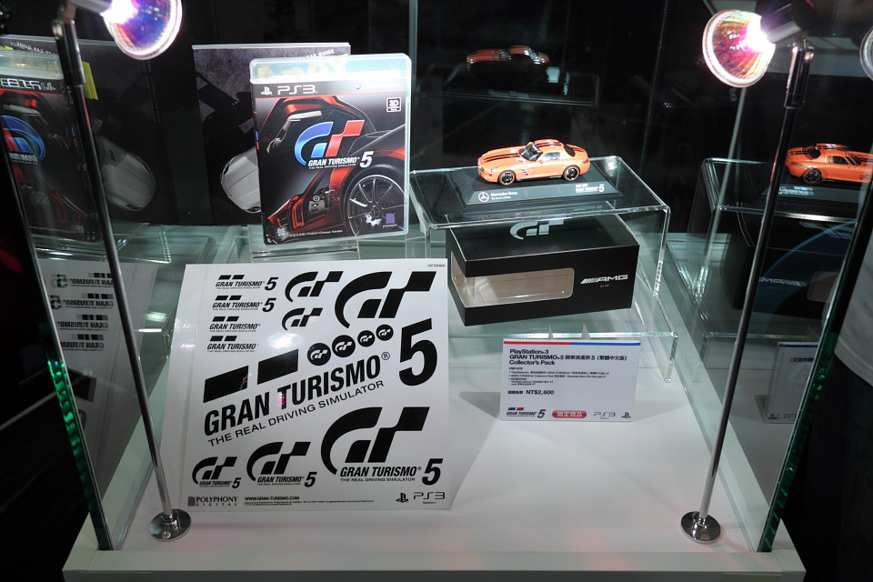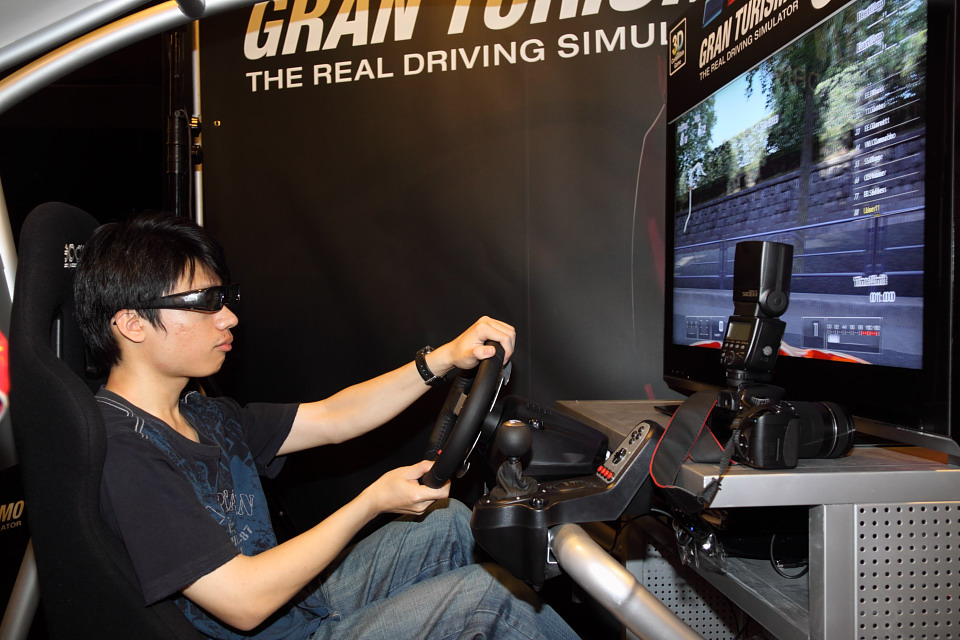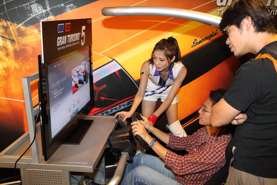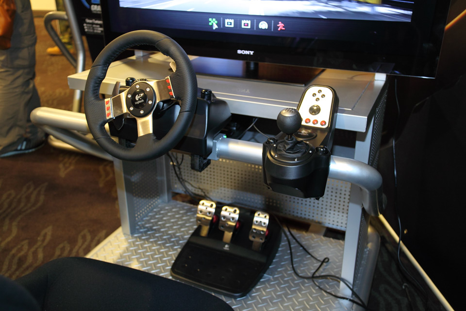 | 搭配羅技 G27 力回饋方向盤與賽車駕駛座的試玩機台 |