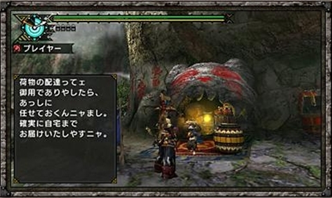 戴著大斗笠和大木桶的喵次郎(ニャン次郎),經營木桶宅配。雖然是免費的服務,不過喵次郎會將玩家背包裡的物品(含臨時背包)確實送回家裡喔。一個任務只能送一次。另外,一部分任務中配發、支給用的道具沒辦法宅配。