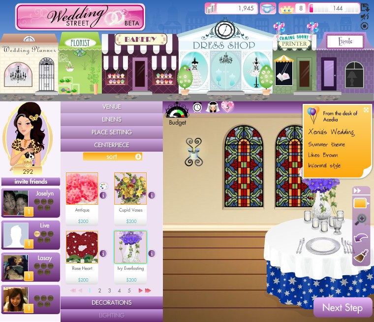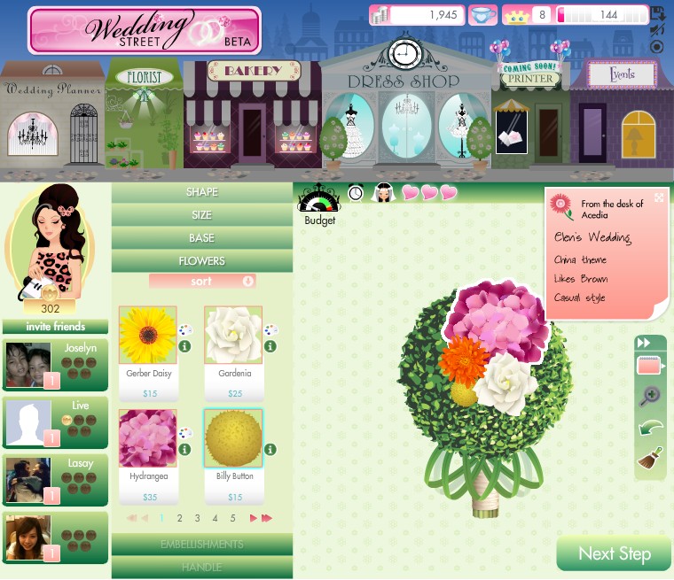Wedding Street》就是讓玩家扮演婚顧,擁有數間與婚禮相關的店面,從頭到尾一條龍式的服務客戶,滿足新娘為最高指導原則,依照新娘喜好、需求打造出獨一無二的專屬婚禮。