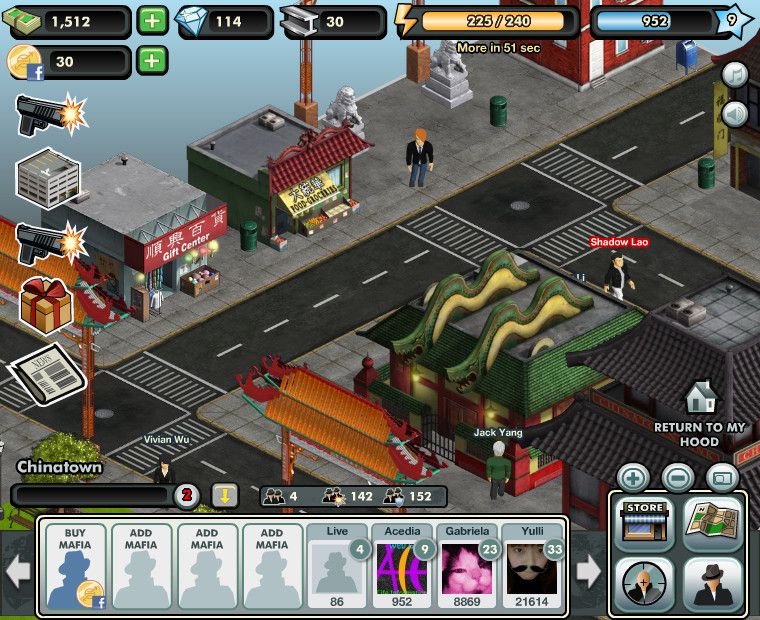 Crime City》就是將同樣的黑幫主題完全圖形化,不需要再看純文字,取而代之的是細膩的 Flash 小動畫,讓遊戲玩起來更有投入感, 並透過募集好友創造出一支最強的黑幫。