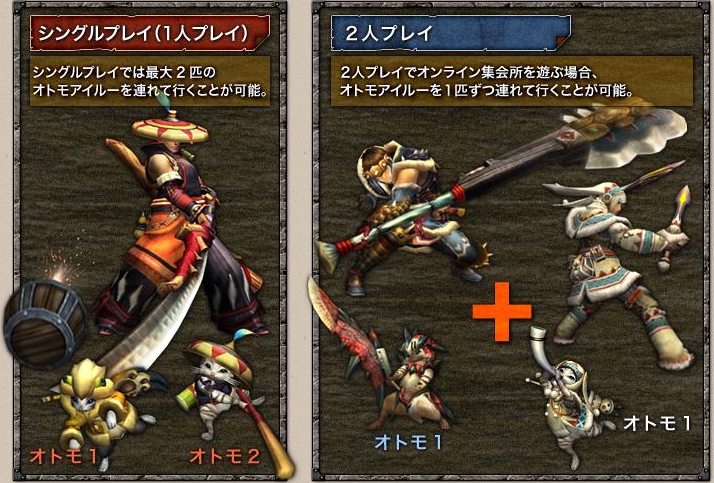 | 單人遊戲帶兩隻艾路、雙人遊戲一位獵人各帶一隻 |