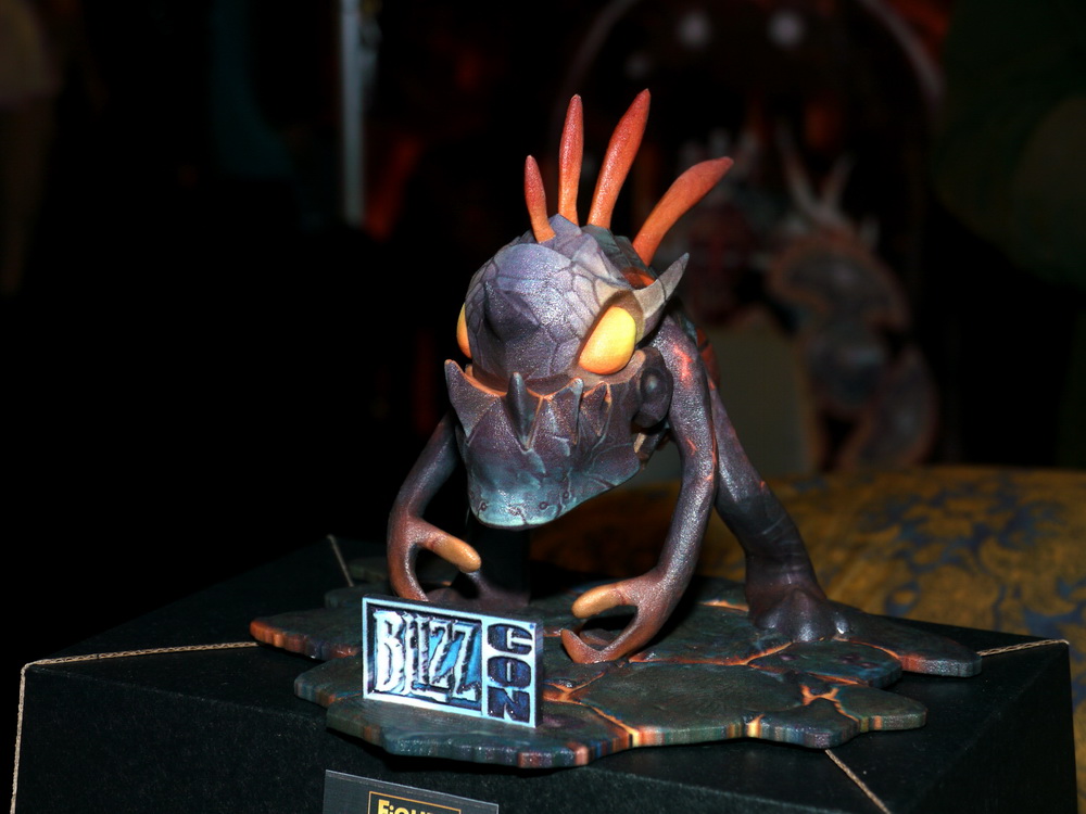 至於慈善拍賣區則是 Blizzard 藝術家捐出個人創作,供現場玩家在現場畫作下本子上寫上自己願意競標的價錢,在展覽結束前價高者得標,所得將捐給慈善機構。Blizzard 表示,從 2003 年以來,已經有超過 10 萬名玩家透過拍賣、捐款等方式幫助了需要幫助的病童。