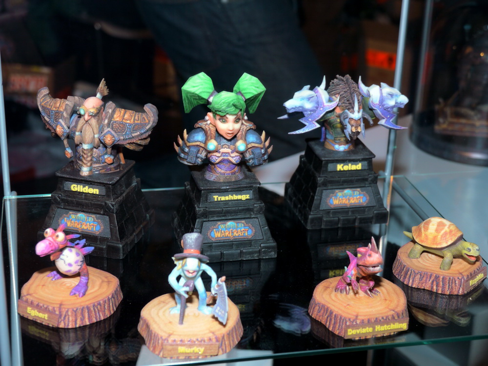 魔獸世界 》 Figure Prints 公仔,玩家可以在網路上依照自己角色模樣、訂做出專屬於自己角色的公仔,而現場也展示了像此次 BlizzCon 參加者可以獲得的獨家虛擬寵物、獵人與寵物、魚人陸戰隊等公仔模樣,吸引許多玩家駐足詢問。