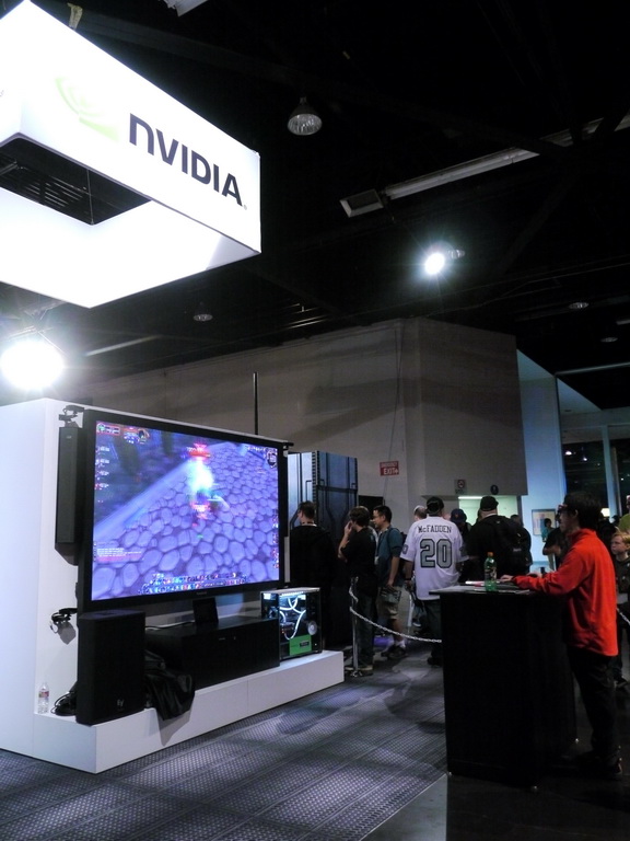 C 廳中也聚集許多 Blizzard 合作廠商的攤位,像 Nvidia 攤位就擺出大型螢幕結合 3D 配備,讓玩家可以在 3D 情境中玩《