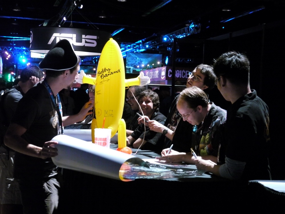 慈善拍賣區有著讓許多吸引人的精品,像是上面有所有 Blizzard 高層與研發團隊等共同簽名的 n00bz 陸戰隊大公仔,有著 Blizzard 高層與《