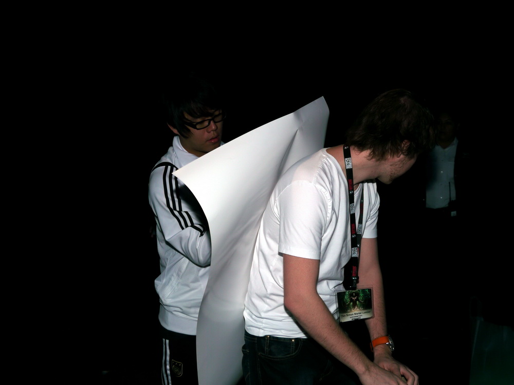 現場提供五顏六色的畫筆,開放讓所有到場參觀的玩家,在原本是純白色的牆面上盡情揮灑個人創意,現場眾多玩家簽下大名,有的則是精心加上了代表個人角色或是公會徽記的圖案等,讓整面牆顯得繽紛奪目。