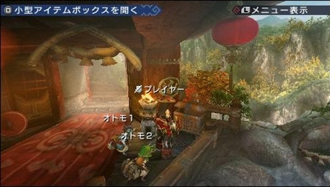 | 任務出發口右側有個小型道具箱,可以在裡面放置或取出道具或素材。裝備的變更請在獵人的房間變更 |