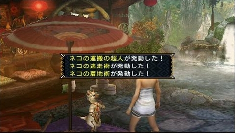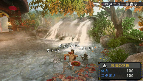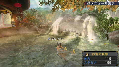 在優克摩村的浴場區域泡溫泉,可以得到提昇體力、精力(スタミナ)等等的「溫泉效果」。提升的效果限一次任務,另外在任務中要是力盡效果也會消失。