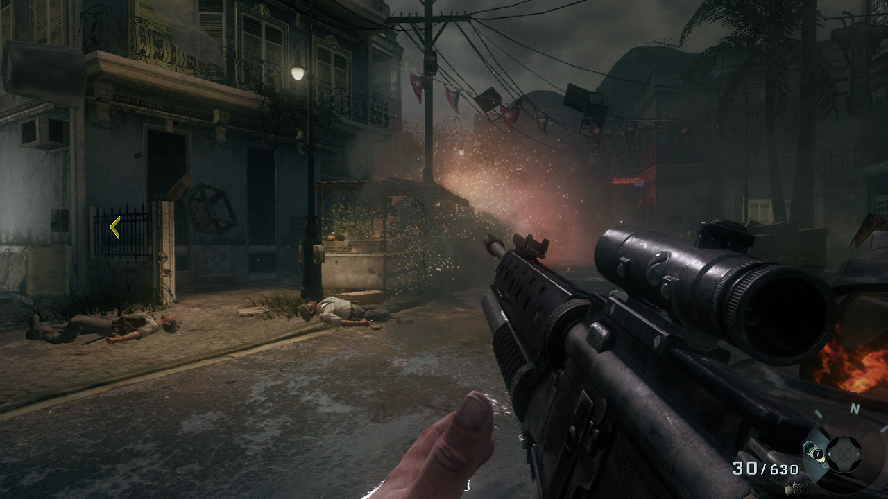 此時場景跟隨著回憶來到了古巴,主角一行人在當地的一間小酒吧內交換作戰情報,沒想到特務的身分敗露,為了脫身,當場就與古巴警察展開激烈的駁火;玩家要做的事情很簡單,就是跟隨隊長 Woods 的帶領,以手上的槍榴彈打爆接踵而來的警車後衝出警方的包圍即可。接著,美國 CIA 秘謀刺殺卡斯楚的《黑色行動》,由此正式揭開序幕。