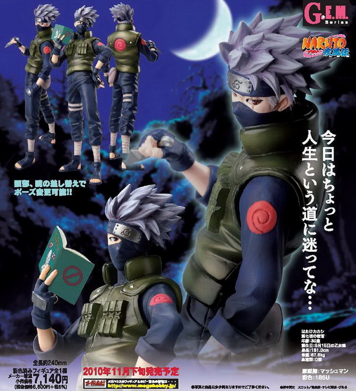 「G.M.I シリーズ NARUTO-ナルト- 疾風伝 はたけカカシ」 發售日期:11 月下旬 製作單位:メガハウス 定 價:7140 元(日幣) 備 註:1/8 塗裝完成品,全高約 240 mm |