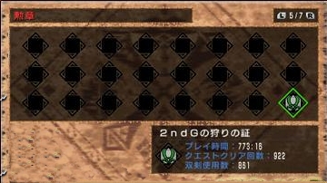 ● 勳章「2nd G 狩獵之証」以及在 2nd G 的遊戲時數、通過任務數和武器使用次數的紀錄。