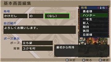 | 選擇獵人稱號 | 擺好姿勢 |