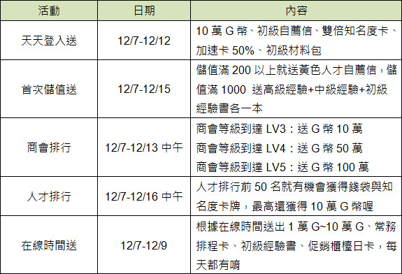 自 12 月 7 日起至 12 月 16 止,官方舉辦多種活動,開出多項好禮相贈,富豪們別再錯過,快來看看有哪些好康活動吧!