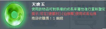 ● 成長仙煉:玩家對於成長屬性不滿意時,可使用天清玉對裝備進行隨機刷新。
