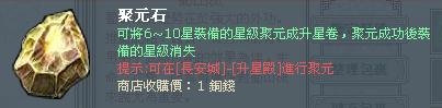 官方指出,二服將增加升星聚元系統,讓玩家不必再苦惱要重覆的升星裝備。凡升星過的裝備都可重複利用,玩家通過聚元可以獲得升星卷,升星卷可以直接將新裝備升級到更高等級,並保證百分百成功。為鼓勵玩家多升星,讓玩家可以得到更多裝備打造的樂趣又不用再花上大把的銀子。裝備聚元後,將會得到 +1 至 +10 星級的道具:升星卷,使用升星卷將直接提升新裝備的星級。