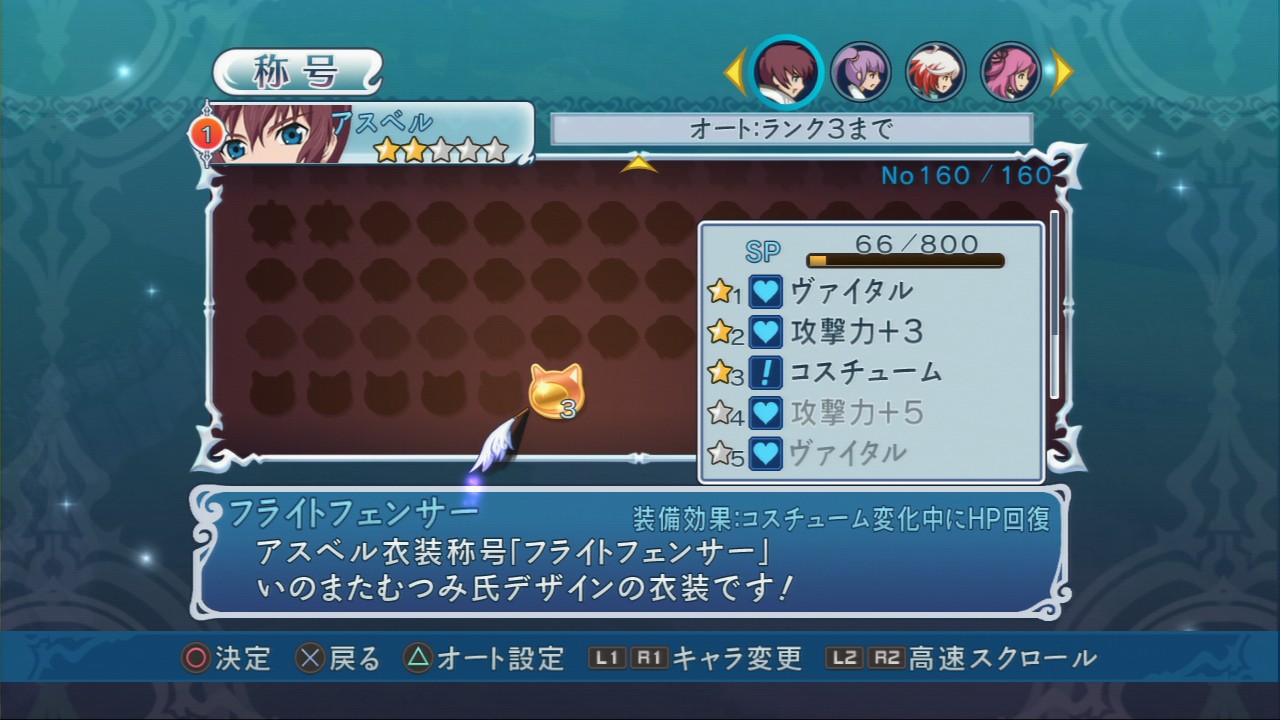 「豬股睦美老師原創設計」是由本代角色設定畫家豬股睦美替各角色特別設計的服裝稱號,先前曾在 Wii 版推出過,本次則是在 PS3 版推出,穿著後升級時可獲得技能。