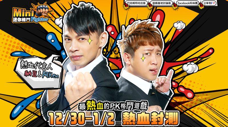 迷你格鬥 Online》特色相符的代言人,費盡心思尋覓合適人選,特別邀請國內綜藝節目主持人「阿 Ken」和「納豆」擔任遊戲代言人。兩人再度攜手拍攝遊戲廣告影片,藉由他們一流的搞笑功力,充分展現出《