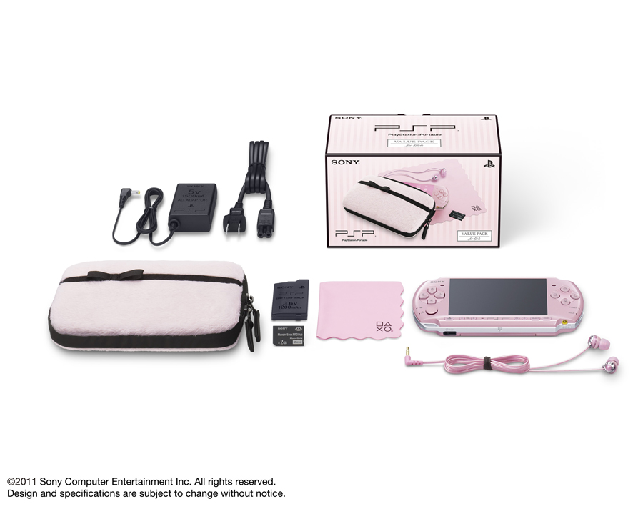 日本索尼電腦娛樂(SCEJ)發表,將於 2 月在日本限量推出針對女性消費族群的「花漾粉紅(Blossom Pink)」配色 PSP 主機與收納包同梱組合「PSP 超值包 for Girls」