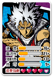 「金」─性格單純、火爆,為愛勇於表達的急性子:熱血沸騰俱樂部的領隊,牡羊座,4 月 10 日號出生的他是個意志堅強的獨立家,喜歡隨心所欲的裝扮自己,就算跟潮流明顯不同也不在意。B 型的金凡事都是順著當下心意去做,通常輕視團體規則與社會規範,跑在屬於他自己的路上。從不吝於表達熱情,對愛情的攻勢令人難以抵擋,還會讓情敵知難而退。