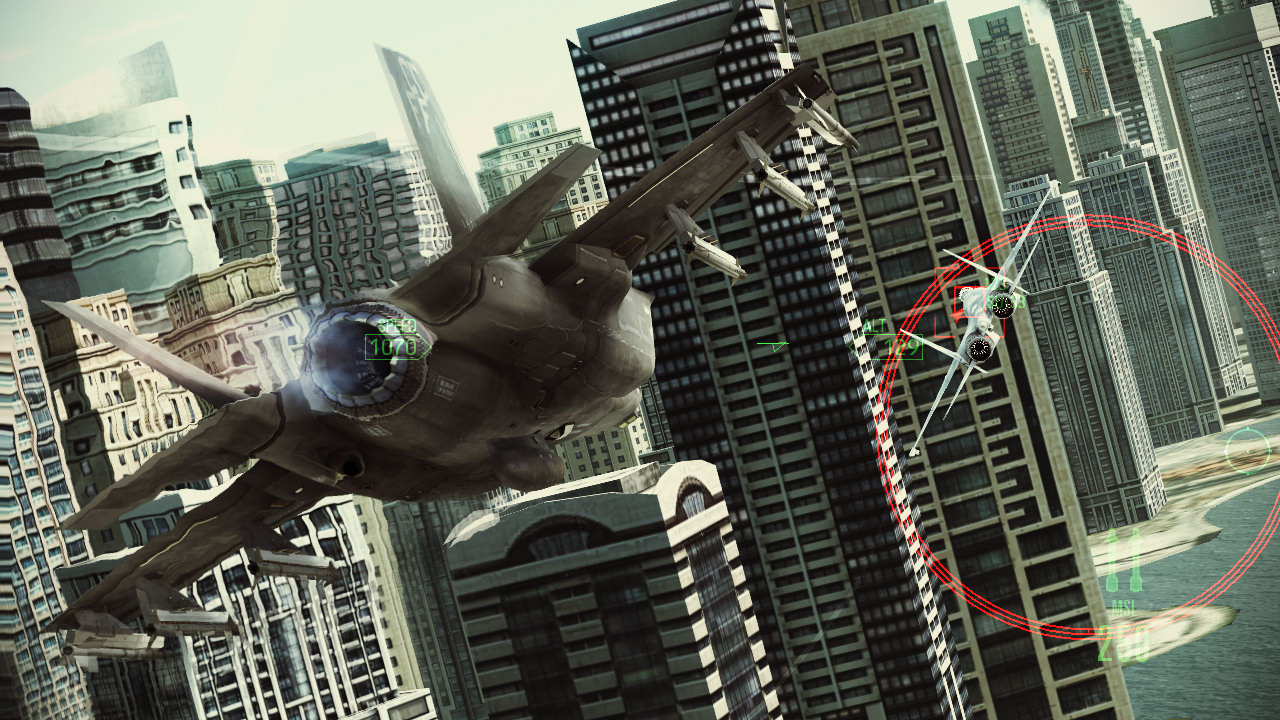 空戰奇兵:突擊地平線 》首度導入被稱為「近距離攻擊(Close-range Assault)」的新系統,來呈現高動作性與高戲劇性的魄力空戰纏鬥演出,以超音速穿梭於摩天樓群間,緊咬敵機尾巴驅使機砲飛彈將之摧毀殆盡,體驗火光碎片迎面而來的激烈戰鬥快感。