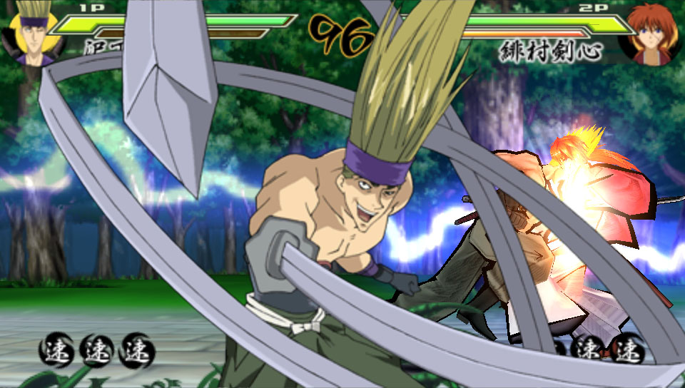 神劍闖江湖》登場角色中,有著遠超越其他劍士之破格實力的巨人不二與超人比古清十郎,也會在遊戲中重現原作名場面的巨人對超人驚天動地對決。