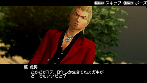 遊戲主角梶虎男是仍保有俠義古風的黑道幫派「大神組」第三代的年輕頭目。以過人的膽識與手段在組中逐步展露頭角,如今已成為道上無人不知無人不曉的狠腳色,人稱「食人虎」。