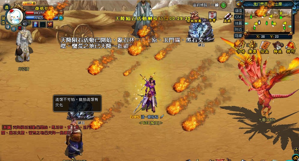 跨服競技大開天書現世,修仙界也出現亂象,天降神祕隕石,每逢週二、週四在特定時間,在亂石林、黃土原、玉門關、黑石戈壁、蠻荒之地會出現天降隕石效果,隨後在地上會有特殊礦石供玩家採集,若採集成功玩家將可隨機獲得特殊礦產材料。