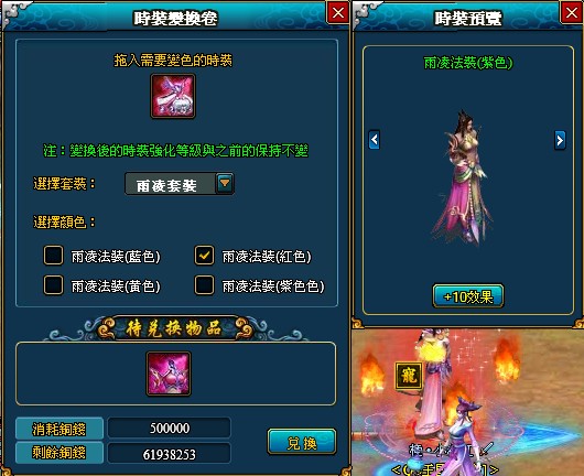 夢幻修仙》當中的時裝系統,往後想要換一套新的時裝將不必花費精力與時間去蒐集絲綢與強化。本次改版官方特別推出『時裝變換卷』,讓玩家可以在不影響強化等級與狀態的情況之下,隨意更換身上的時裝顏色。
