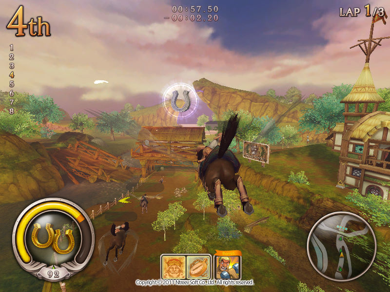 一開始會接到新手基本訓練任務,只要越過障礙物與各式崎嶇的地形並且收集到 10 個氣球即算完成,對於第一次玩的新手難度算頗大,必需善用跳躍、飛翔、甩尾等技巧來完成,小編第一次嘗試也是花了很大的功夫,甩尾甩過頭算是家常便飯。遊戲中是用鍵盤來操作馬兒,Z 鍵為跳躍,雙擊跳躍並且長按則可以使用特殊技巧:飛翔。當然,如果只有單純的跑跳一定沒什麼樂趣,所以按下 Shift 加上方向鍵的甩尾功能,也頗有開車甩尾似的臨場感。